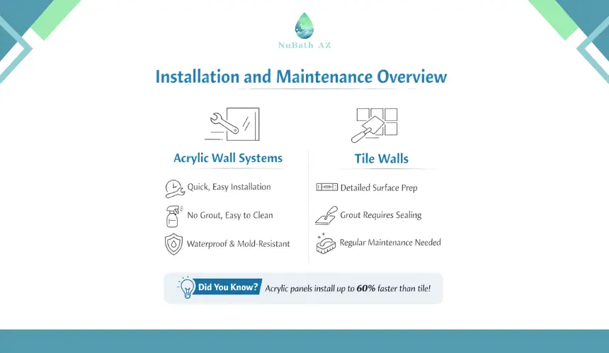Did you know? Acrylic panels can be installed in a single day, making them a preferred option for homeowners in Phoenix neighborhoods like Arcadia and Encanto who want a quick renovation, while tile installation can take several days due to curing and grout requirements. |